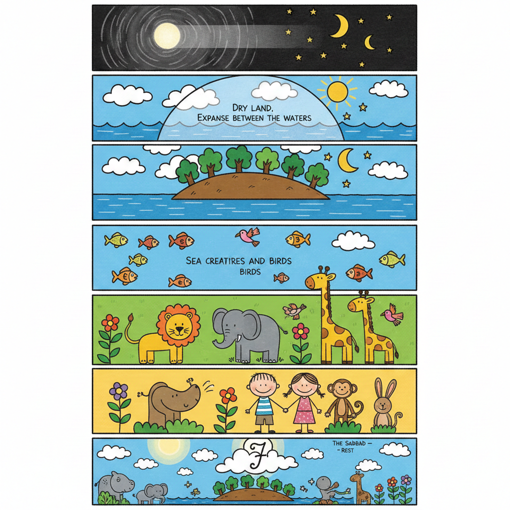 초등부(1-6학년) 주보 배경 이미지로 활용하려고 나노바나나(AI)로 만든 천지창조 이미지입니다.